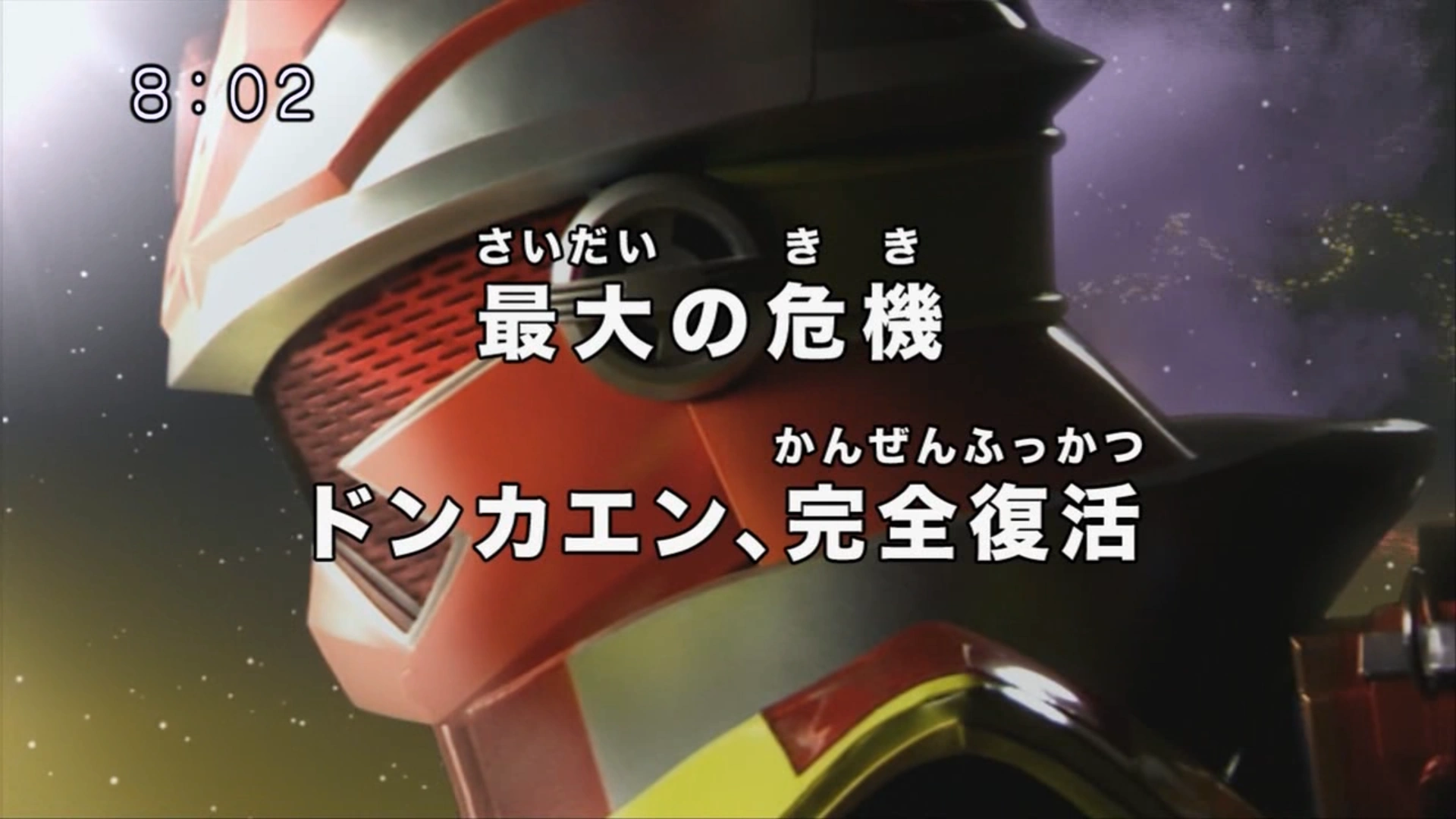 The Greatest Crisis: Donkaen, Complete Revival is the fourty-ninth episode of Tomica Hero: Rescue Fire. It first aired in Japan on March 13, 2010 on TV Aichi.