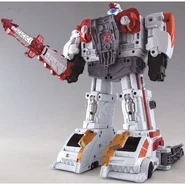 The robot mode can combine with the Fire Dragon to form the Rescue King.